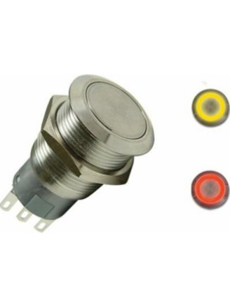 Item Details: Red or Yellow, 0.86 in. Bezel OD, Body OD, 0.75 in. Body OD, 1.6 in. Height, Material, Stainless steel material, 12 volts
