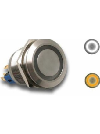 Item Details: White or Orange, 0.98 in. Bezel OD, Body OD, 0.86 in. Body OD, 1.5 in. Height, Material, Stainless steel material, 12 volts