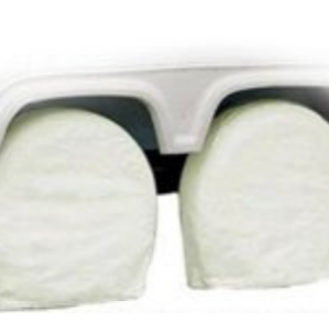 CLASSIC ACCESSORIES RV WHEEL COVERS, WHITE, SET OF 2 — 26.75-28.75 in. diameter; With elastic hem that holds wheel covers securely; Made from water-repellent heavy-duty vinyl with soft, no-scratch backing; Keeps wheels clean while protecting them against sun damage, weather, and other elements; Easily slips on; Folds up for compact storage; Easy to clean.