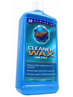 MEGUIARS ONE STEP CLEANER WAX — 32 oz.; Contains non-abrasive formula that cleans, polishes and protects all boats and RVs in one easy step; Removes light oxidation and haze, minor scratches, and swirls; Provides long-lasting protection against salt air, corrosion, and the sun’s ultraviolet rays.
