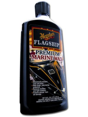 MEGUIARS FLAGSHIP PREMIUM MARINE WAX — 16 oz.; Enriches color and shine of fiberglass and gel coat surfaces; Effective in removing light oxidation and dullness, restoring gloss, and adding protection from UV damage; Use wax only after the surface has been cleaned and restored to a like new or average finish.