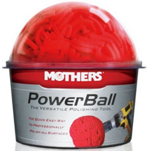 MOTHERS POWERBALL — The first foam polishing tool designed to revitalize billet, diamond plate, polished aluminum, stainless steel, plastic lenses, convertible top windows, and much more; With a unique and durable construction that compresses to fit tight spaces, so polishing difficult, intricate metalwork to a mirror-like finish is fast and easy; Recommended for use with a variable-speed cordless drill at a medium torque setting.