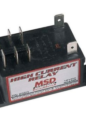 MSD DPST HIGH CURRENT RELAY — Activate accessories that draw high current; Very reliable due to the fully automated manufacturing process and sophisticated coil winding procedure; Ideal for use with the MSD RPM Activated Switch when 12 volts are responsible for activating a high current device such as a nitrous solenoid; Rated at 30 amps with a 12 volt input voltage.